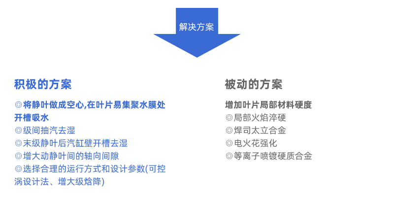The blades in the low-pressure section of the steam turbine operate in wet steam. Under the action of water droplets, water erosion occurs on the blades. Especially for the last stage blades in the low-pressure section, due to the high steam humidity and high circumferential speed, the blades are extremely prone to water erosion.